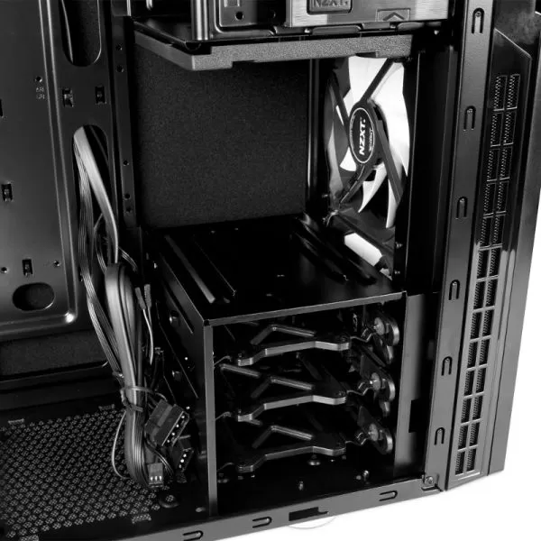 NZXT H230 Black, SECC Steel ATX Mid Tower, fara sursa, captusita cu material fonoabsorbant, interior vopsit negru, 3x5.25” (extern), 6x3.5”/2.5” (intern), design tool-less, fata – 1x 120mm fan (inclus) si 1x 120mm fan (optional), spate – 1x 120mm fan (inclus), podea – 1x 120mm fan (optional), 2x USB 3.0, 1x Audio/Mic, ATX / microATX / Mini-ITX, sloturi expansiune: x7, inaltime maxima cooler procesor: 158mm, lungime maxima placa video: 290mm (cu cusca hard disk instalata) sau 400mm (fara cusca hard disk instalata), filtre de praf incluse, dimensiuni: 195 x 447 x 502mm,