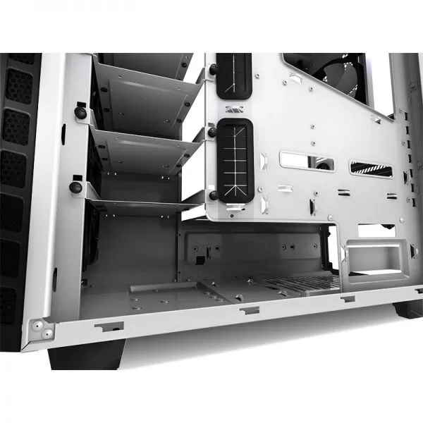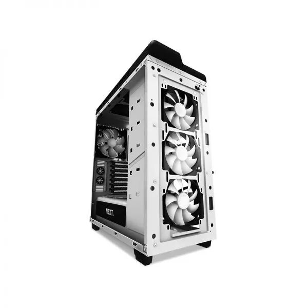 NZXT H440 White, SECC Steel ATX Mid Tower, fara sursa, captusita cu material fonoabsorbant, interior vopsit alb, 8x3.5”/2.5” (intern), design tool-less, fata – 3x 120mm fan (FN V2, inclus) sau 2x 140mm fans (optional), spate – 1x 140mm fan (FN V2, inclus) sau 1x 120mm fan (optional), tavan – 2x 140mm fans (optional) sau 3x 120mm fans (optional), 2x USB 3.0, 2x USB 2.0, 1x Audio/Mic, 1x control lumini, ATX / microATX / Mini-ITX, sloturi expansiune: x7, inaltime maxima cooler procesor: 180mm, lungime maxima placa video: 294mm (cu cusca hard disk montata) sau 406.5mm (fara cusca hard disk montata), suport radiatoare water cooling: fata – 2x 140mm sau 3x 120mm, tavan – 2x 140mm sau 3x 120mm, spate – 1x 140/120mm, filtre de praf incluse, dimensiuni: 220 x 510 x 475.3mm