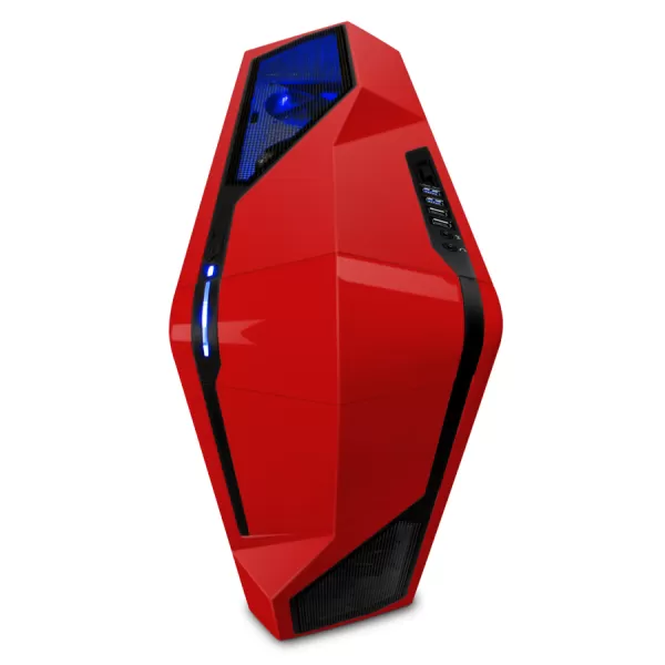 NZXT Phantom 410 Red, SECC Steel ATX Mid Tower, fara sursa, interior vopsit rosu, 3x5.25” (extern), 6x3.5” (intern), design tool-less, fan controller 30W inclus, fata – 2x 120mm fans (1x 120mm inclus) sau 1x 140mm fan (optional), spate – 1x 120mm fan (inclus), tavan – 1x 140mm fan (inclus) si 1x 140/120mm fan (optional), lateral – 1x 140/120mm fan (optional), cusca HDD – 1x 140/120mm fan (pivotant, optional), 2x USB 3.0, 2x USB 2.0, 1x Audio/Mic, ATX / microATX / Mini-ITX, sloturi expansiune: x7, lungime maxima placa video: 305mm (fara ventilator intern instalat) sau 280mm (cu ventilator intern instalat), filtre de praf incluse, dimensiuni: 215 x 516 x 532mm, greutate: 9kg