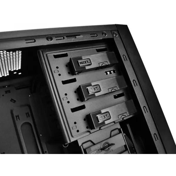 NZXT Source 220 Black, SECC Steel ATX Mid Tower, fara sursa, interior vopsit negru, 3x5.25” (extern), 8x3.5” (intern), design tool-less, fata – 2x 120mm fans (optional), spate – 1x 120mm fan (1200 RPM, inclus), podea – 1x 120mm fan (optional), tavan – 1x 140mm fan (inclus) si 1x 140/120mm fan (optional), 1x USB 3.0, 1x USB 2.0, 1x Audio/Mic, ATX / microATX, sloturi expansiune: x7, inaltime maxima cooler procesor: 160mm, lungime maxima placa video: 230mm (cu hard disk instalat) sau 330mm (fara hard disk instalat), dimensiuni: 195 x 450 x 495.5mm