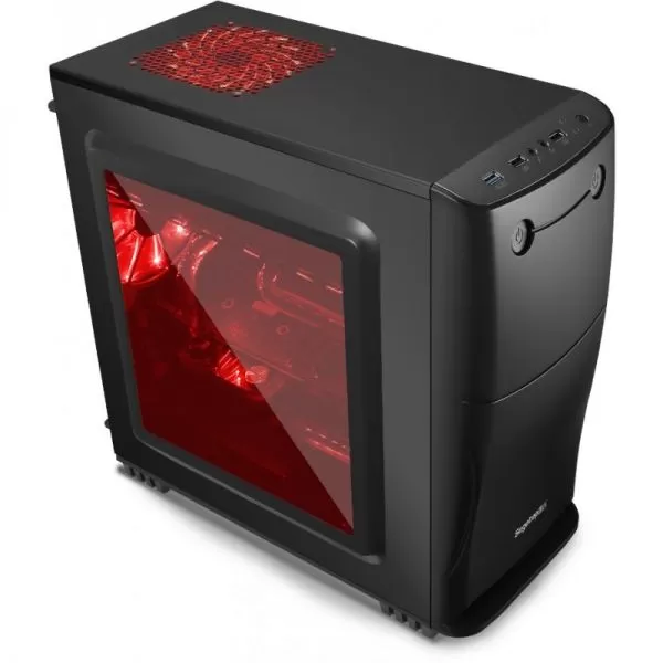 Segotep Baymini Black, SPCC Steel mATX Mini Tower, fara sursa, interior vopsit negru, 2x3.5” (intern), 2x2.5” (intern), fata – 1x 120mm fan (inclus) si 1x 120mm fan (optional), spate – 1x 120mm fan (optional), tavan – 1x 120mm fan (optional), 1x USB 3.0, 2x USB 2.0, HD Audio, microATX / Mini-ITX, sloturi expansiune: x4, filtre de praf incluse, dimensiuni: 395x395x200mm