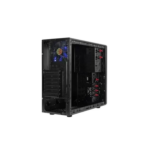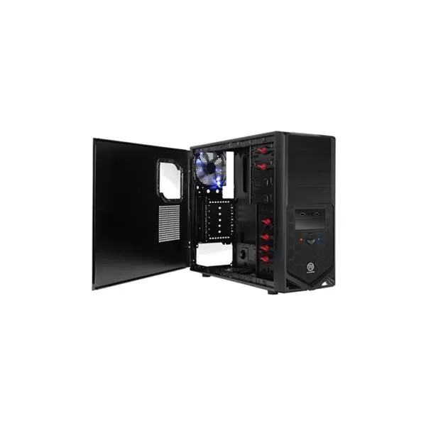 Thermaltake V4, SECC Steel ATX Mid Tower, fara sursa, interior vopsit in negru, 4x5.25” (extern), 1x3.5” (extern), 4x3.5” (intern), 1x2.5” (intern), design tool-less, front – 1x 120mm fan (optional), rear – 1x 120mm Blue LED fan (1300 RPM, 17 dBA, inclus), bottom – 1x 120mm fan (optional), top – 2x 120mm fans (optional), 2x USB 2.0, HD Audio, ATX / microATX, dimensiuni: 430 x 190 x 475 mm