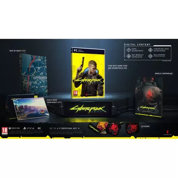 Cyberpunk 2077 include următoarele articole in format fizic: - cutie cu codul jocului şi CD cu coloana sonoră oficială - World Compendium – informaţii despre mediul şi lore-ul jocului - postcard-uri Night City - hartă Night City - stickereData de lansare: 16.04.2020