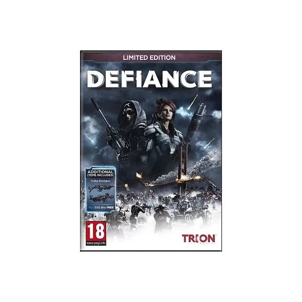 Defiance este un joc MMO shooter cu teme SF, publicat de Trion Worlds. Ideea jocului este inspirata de la seria TV cu acelasi nume, dar are o povestea inedita.<br/>Actiunea din Defiance are loc in zona golfului San Francisco dupa o modificare intensa a mediului Pamantului, ceea ce a dus l-a aparitia de noi specii. Mai multe rase de extraterestrii au venit pe Pamant pentru a se stabilii aici, ceea ce a dus la razboaie, devastand si mai mult planeta. Dupa razboi, oamenii si extraterestrii, Votans, au invatat sa convietuiasca.<br/>Jucatorii pot sa aleaga intra in rolul unor "Ark Hunters" care sunt trimisi de Karl Von Bach (CEO pentru Von Bach Industries) in zona golfului pentru a cauta echipamente extraterestre. Pe langa asta, jucatorii vor avea si alte misiuni pentru a castiga bani si competitii cu alti Ark Hunters.<br/>Caracteristici;<br/>1. CO-OP masiv (1000 de jucatori) - OPEN WORLD CO-OP MISSIONS<br/>2. Shadow War (mai mult de 100 jucatori) - OPEN WORLD CAPTURE AND HOLD<br/>3. Ark Falls (50 de jucatori) - MULTI-STAGE DYNAMIC BOSS BATTLES<br/>4. VS Maps (pana la 32 de jucatori) - BOTH VEHICLE AND TRADITIONAL COMBAT GAMEPLAY MODES<br/>Defiance Limited Edition contine;<br/>- Bonus weapon; Volter Shotgun<br/>- In-game currency ; 500 Bits
