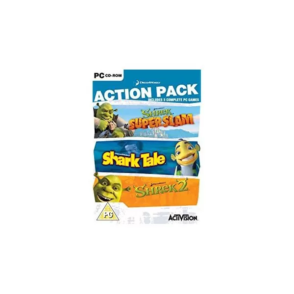 Pachetul contine 3 jocuri cu personajele?din?celebrele filme de desene animate: Shrek SuperSlam, Shark Tale, Shrek 2.