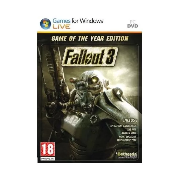 Pachetul Fallout 3 Game of the Year Edition va propune la un pret foarte bun intreaga experienta Fallout 3 continuta in jocul original plus cele 5 add-on-uri ce i-au urmat: Operation Anchorage, The Pitt, Broken Steel, Point Lookout si Mothership Zeta. De mentionat este faptul ca ultimul nu a aparut pana acum decat in format digital downladabil.