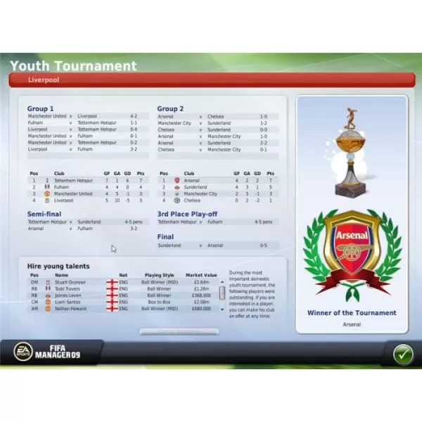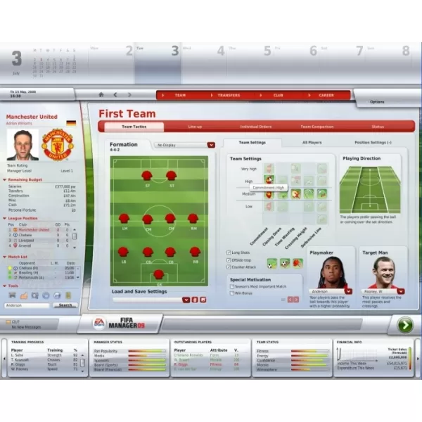 FIFA Manager 2009 (FIFA Manager 09) este al 7-lea joc din serie si a fost lansat de Electronic Arts in octombrie 2008, in exclusivitate pe PC.
