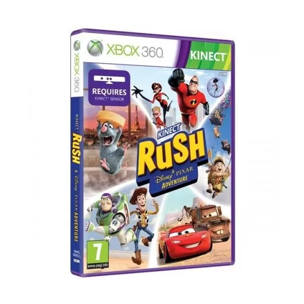 Kinect Rush: A Disney Pixar Adventures este un joc produs de Disney special pentru senzorul Kinect al consolei Xbox 360. Invita familiile si fanii de toate varstele sa experimenteze acum ca niciodata lumea a 5 filme minunate Disney / Pixar ! Prin magia senzorului Kinect pentru Xbox 360, scaneaza-te pentru a deveni un personaj unic in cele 5 lumi Pixar.