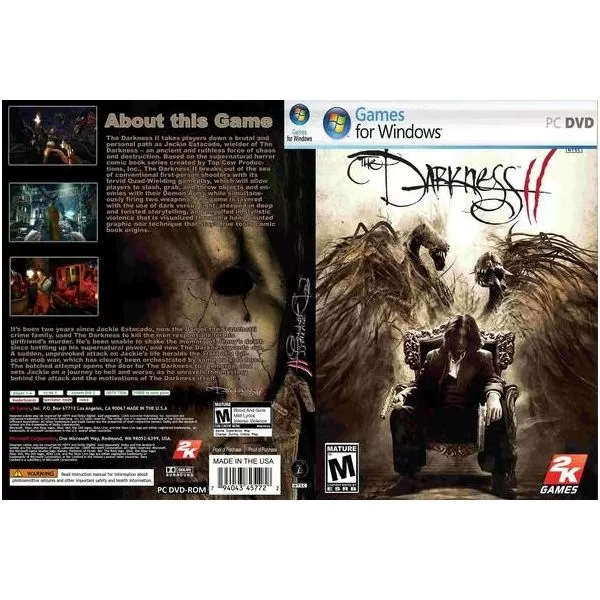 The Darkness 2 este un joc care are elemente din genul horror si actiune impletite cu elemente first person shooter si survival. The Darkness 2 reprezinta continare jocului original, The Darkness, aparut in 2007 si urmareste povestea eroului Jackie Estacado. Jocul este dezvoltat de Digital Extremes si publicat de 2K Games, pe 10 februarie 2012, pentru PC, Xbox 360 si PlayStation 3.