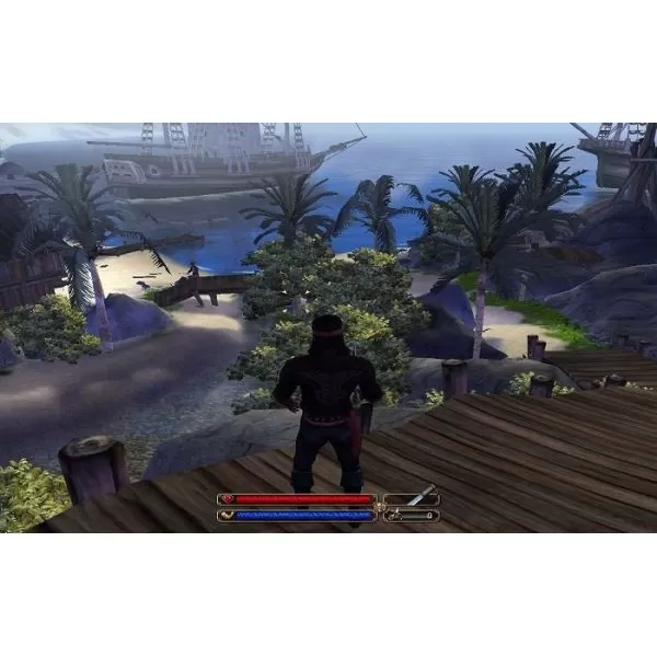 Tortuga - Two Treasures este un Fantasy Action Adventure, in care jucatorul interpreteaza rolul unui pirat pe nume Thomas "Hawk" Blythe. Acesta este capitanul navei