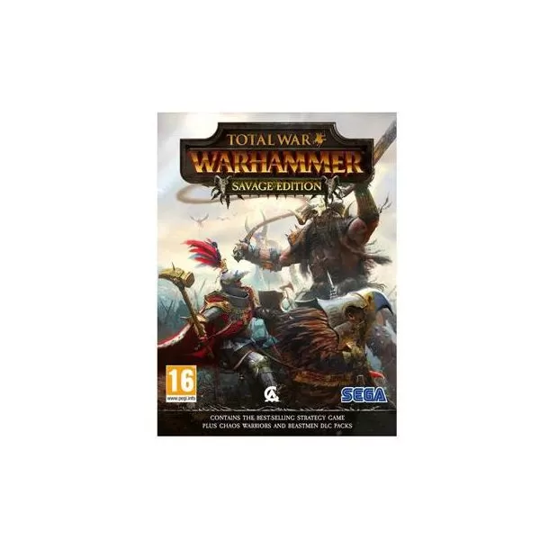 Total War Warhammer: Savage Edition conţine: - jocul Total War Warhammer - DLC-ul Call of the Beastmen - DLC-ul Chaos Warriors Vechea Lume răsună în hărmălaia bătăliilor neîncetate. Singura constantă este RĂZBOIUL! Un joc de strategie fantezist de proporţii legendare, Total War: WARHAMMER combină o campanie întemeiată pe dependenţă de a construi unui imperiu cu ajutorul unor bătălii colosale, ce se petrec în timp real, toate instalate în lumea intensă şi incredibilă a Warhammer Fantasy Battles. Deţii controlul asupra patru rase total diferite: Imperiul, Piticii, Conţii Vampiri şi Pieile Verzi, fiecare cu un caracter unic, cu unităţi de front şi stiluri de joc diferite. Conduci forţele armate la război ca unul dintre cei opt lorzi legendari din lumea Warhammer Fantasy Battles, dotându-i cu arme legendare, armură şi magie de lupta mortale; câştigate cu greu în lanţurile vânătorii individuale. Pentru prima dată într-un joc Total War, mânuieşte furtuni cu puteri magice pentru a te ajută în luptă şi îndreaptă-te către cer cu ajutorul creaturilor zburătoare, de la dragoni feroce şi balauri până la vulturi gigantici. Sute de ore de joc te aşteaptă la începutul unei noi epoci. Total War: WARHAMMER aduce la viaţă o lume a eroilor legendari, monştri falnici, creaturi zburătoare, furtuni de puteri magice şi batalioane cu războinici de coşmar.