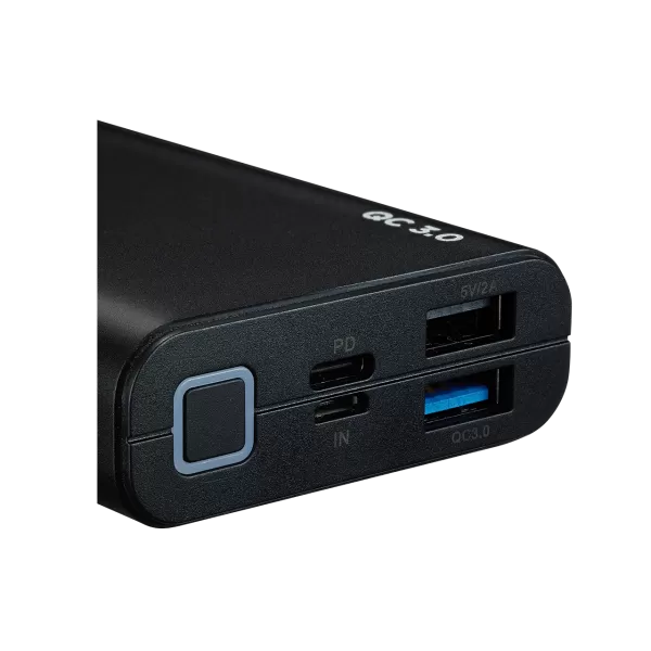 Power bank 10000mAh, quick charge QC3.0, bulit in Lithium Polymer Battery, Black. Micro Input: 5V/2A, 9V/2A, PD Input/Output: 5V/2A, 9V/2A, Output1: 5V/2A, Output2: 18W (QC3.0).