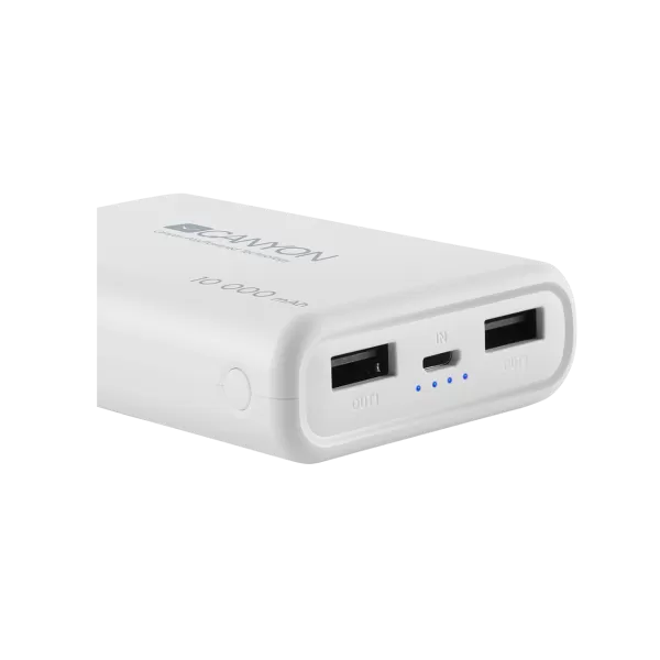 CANYON Power bank 10000mAh built-in 955570 Li-poly battery, Input 5V/2.1A, Output 5V/2.1A(Max), with Smart IC, White, 3in1 USB cable length 0.3m, 90*62*22mm, 0.189Kg