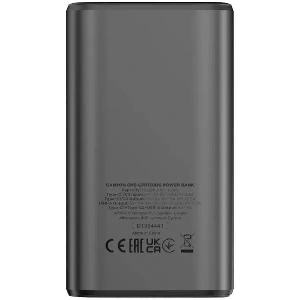 | Caracteristici Baterie Portabila Canyon OnPower 130, 10000mAh, Dark Grey: | |