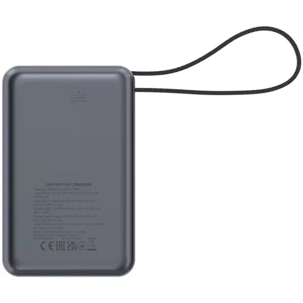 CANYON power bank OnPower 600 built-in cable 20000 mAh PD65W Dark Grey