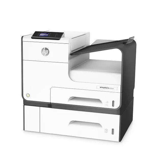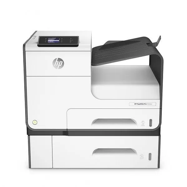 HP PageWide Pro 452dwt Printer; A4, max 55ppm black si color (40ppm ISO), fpo 6.5sec, max 2400x1200dpi, 512 MB RAM, HP PCLXL (PCL6), native PDF, HP Postscript Level 3 emulation, display mono 5.08cm, tava 50+500+500 coli, duplex, USB host, USB 2.0 , GB Ethernet, Wireless 802.11 b/g/n, HP ePrint, HP ePrint Mobile Apps, Google Cloud Print, HP ePrint Wireless Direct, Apple AirPrint, Mopria-certified, duty cycle 50.000pag, recomandat 750 - 4.500 pag/luna, cartuse starter no.973 BK/C/M/Y; optional cartuse 973X (10k BK, 7k C/M/Y).