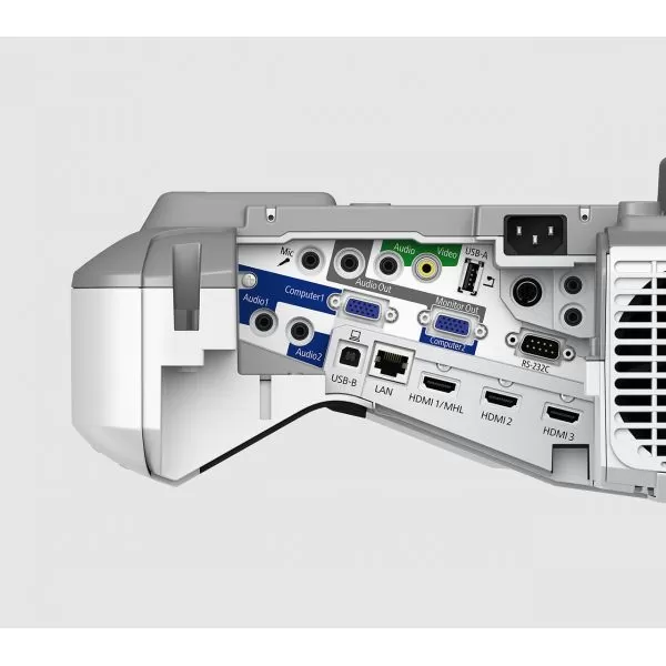 | Conectori | USB 2.0 tip A, USB 2.0 tip B, RS-232C, Interfaţă Ethernet (100 Base-TX/10 Base-T), LAN wireless IEEE 802.11 b/g/n (WiFi 4) (opţional), Intrare VGA (2x), Ieşire VGA, Intrare HDMI (3x), Intrare semnal compus, Intrare RGB (2x), Ieşire RGB, MHL, Ieşire audio mini-jack stereo, Intrare audio mini-jack stereo (3x), intrare pentru microfon, Intrare sincronizare, Ieşire sincronizare |