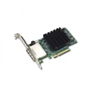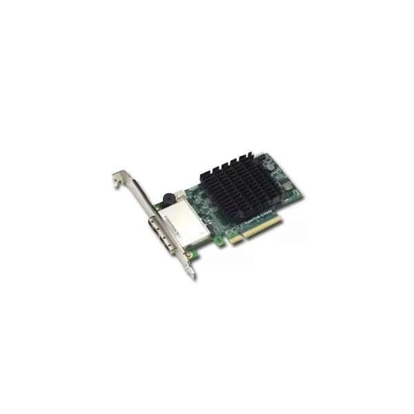 SuperTrak TX8658 Retail no cables Eight external SAS/SATA 3Gb/s ports,PCI-Express x8 host bus interface, RAID 0/1/10 and JBOD,Two SFF-8088 connectors, Single chip processor, Low-profile MD2 form factor