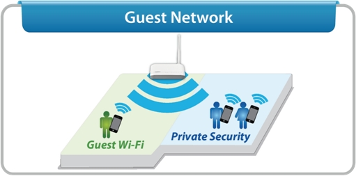 | Retea Guest (Invitat)* Suporta o retea Guest (Invitat) in timp ce-i izoleaza pe „invitati” fata de reteaua principala. (*Doar la modul router) |