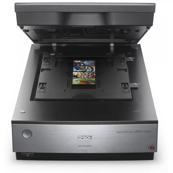 Scanaţi benzi şi diapozitive de 35 mm, precum şi filme de format mediu şi de format mare de 4x5 inci păstrând o bună focalizare, datorită suporturilor pentru filme îmbunătăţite cu control al înălţimii reglabile şi design rigid. V800 acceptă, de asemenea, formate de filme non-standard de până la 8x10 inci, atunci când sunt plasate direct pe geamul scanerului.