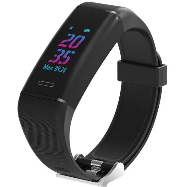 Bratara fitness FitGo FW13 Nitro, GPS, bratara silicon - Negru - display color OLED 0.96", rezolutie 160 x 80 pixeli, touch senzor - capacitate baterie: 160 mAh - certificare IP67 - rezistenta la apa, umiditate, transpiratie si praf - conectivitate: Bluetooth 4.0, GPS (in asociere cu smartphone), port incarcare Micro USB (cablu incarcare inclus) - procesor: Nordic 52832 - senzori: gyroscope - compatibil cu Android 4.4+ /iOS 8.0+ - functii: aplicatia Hi Move (Google Play™) - primirea și efectuarea de apeluri, citire mesaje, starea vremii, pedometru, măsurarea ritmului cardiac, somnului și a caloriilor, monitorizarea activitatilor sportive - 24 moduri de sport, controla muzica, control camera foto telefon - dimensiuni / greutate: 44 x 22.5 x 13.4 mm / 30 g - material carcasa/bratara: compozit / silicon
