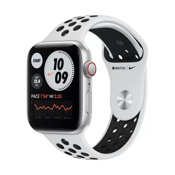 Apple Watch Nike SE GPS + Cellular, 44mm Silver Aluminium Case with Pure Platinum/Black Nike Sport Band