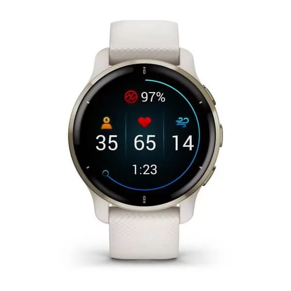 Ceas Garmin SmartWatch Venu 2 Plus Cream Gold Stainless Steel Bezel With Ivory Case And Silicone Band