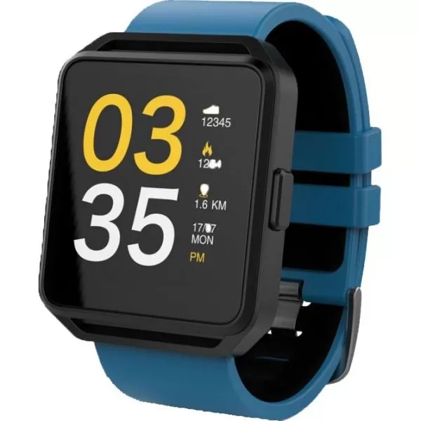 Smartwatch FitGo FW15 Square, bratara silicon - Albastru - tehnologie Smart - display patrat tactil color 1.54”, rezolutie 240 x 240 pixeli - capacitate baterie: Lithium-Ion 230 mAh (3,7 V) - certificare IPX54 - rezistenta la apa, umiditate, transpiratie si praf - conectivitate: Bluetooth 4.0 - procesor: MTK2502D ARM7 260 MHz - memorie: 4 MB RAM + 4 MB ROM - compatibil cu Android 4.4+ /iOS 8.0+ - functii: aplicatia HitFit (Google Play™) - pedometru, măsurarea ritmului cardiac, serviciul Push, primirea și efectuarea de apeluri, alarme, citire mesaje - greutate: 24.7 g