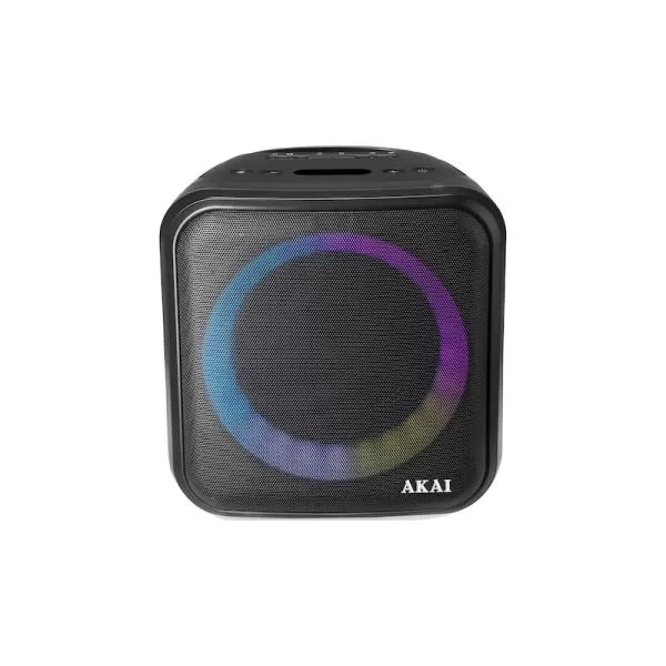 Boxa portabila Akai ABTS-S6, Bluetooth 5.0, putere reala 20W, radio FM, functie Karaoke, lumini dinamice, telecomanda, intrare microfon, difuzor 6.5", tripod pentru sustinere
