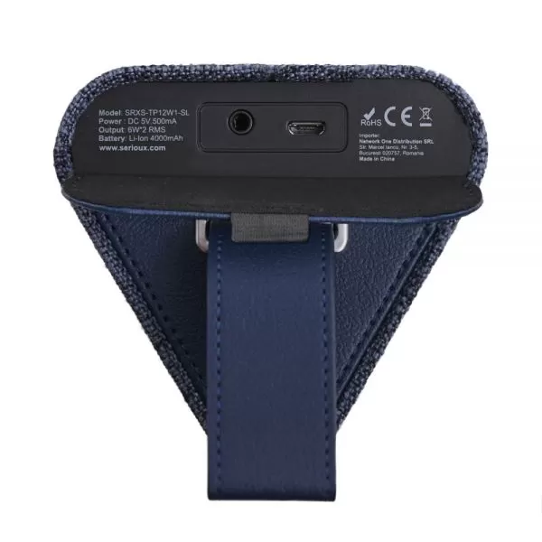 Boxa bluetooth Serioux, portabila, WAVE PRISM 12W, frecventa de raspuns: 90Hz-20KHz, raport semnal/zgomot: 76dB, baterie: 4000mAH, autonomie: 8 ore, hands free, aux, material textil, albastru