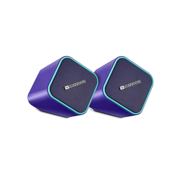 Canyon wired stereo Speaker, 1.2m cable with USB2.0 & 3.5mm audio connector, purple(blue stripe), 65*65*75mm, 0.252kg