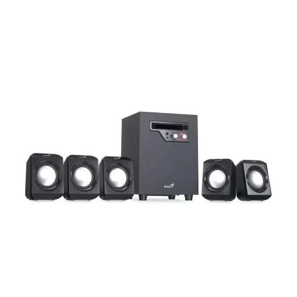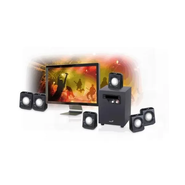 | features: - total output power 26 watts (RMS) - ultra-rigid wood subwoofer with 4” driver delivers amazing bass experience - Volume and Bass controls on subwoofer - Well-designed stylish satellite speakers - color-coded 3.5mm input for 5.1ch PC sound card and stereo audio device package content: - one subwoofer - five satellites - three stereo cables - user’s manual specifications: output (RMS): - total: 26 watts - subwoofer: 14.5 watts, each satellite: 2.3 watts - driver unit: subwoofer: 4”, 4ohms; each satellite: 2.5”, 4ohms - frequency response: 170Hz~20KHz - signal-to-noise ratio: 80dB - functions: volume, bass dimensions: - subwoofer: 170x230x180 mm - each satellite: 82x111x68 mm - gift box: 267x292x240 mm - body weight: 3,283g - pcs./ctn.: 4 - Genius item-no.: 31731004100 - EAN: 4710268238300 | |||