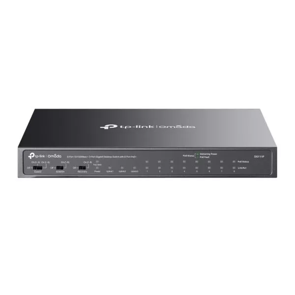 Switch TP-Link Omada DS111P, fara management, cu PoE, 2x1000Mbps + 8x100Mbps (PoE+) + 1xSFP