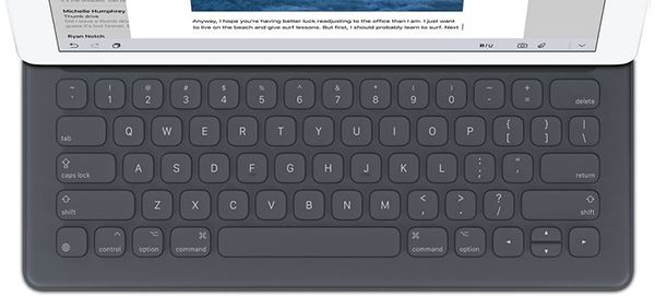 Usor de folosit. Si mai usor sa o iei cu tine. Deschide tastatura Smart Keyboard cand ai nevoie de ea. Inchide-o cand ai terminat, pentru a crea o coperta supla si usoara. Designul elegant este suficient de durabil pentru a rezista la utilizarea zilnica. Si chiar si la a mia ciorna a proiectului tau. |