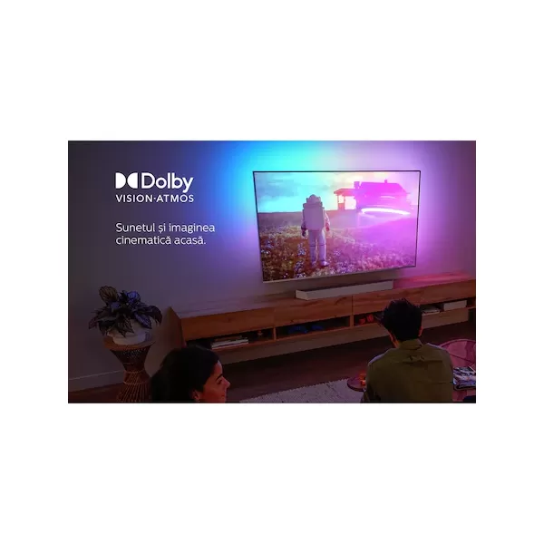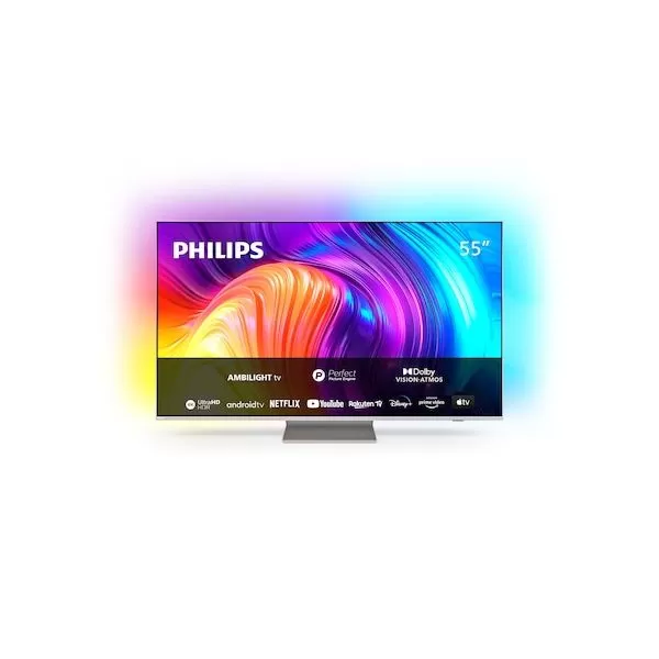 Televizor, Philips, Ambilight, 55PUS8807/12, 2022, 55"-139CM, LED, Smart TV, 4K, Silver, Flat, Android TV, , P5 picture engine-120 Hz, HDR10 +/HLG/Dolby Vision, 120 Hz, DVB-T/T2/T2-HD/C/S/S2, 2, 20 W, Subwoofer integrat: Nu, Wi-Fi, Bluetooth, 1 x Jack 3.5 mm, 2 x USB, 1 x RJ-45, CI+ slot, 4 x HDMI, 1 x Digital Optical Out, 1 x Intrare audio S/D, 1 x intrări componente (YPbPr), 200 x 300, Remote, 2 AAA batteries, Power cable, Quick start guide, Legal and safety Leaflet, Table support