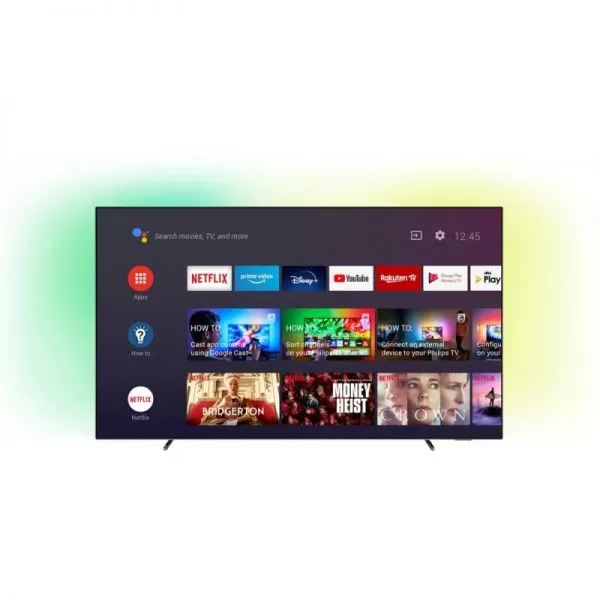Televizor OLED Philips 65OLED705/12, 164 cm, Smart Android, 4K Ultra HD, OLED, clasa G, HDR, Android 9.0 Pie, YouTube, Netflix, HBOGo, Comenzi vocale, Asistent vocal inteligent, Screen Mirroring, Ambilight, Inregistrare USB, iOS, Android, Google assistant, Quad core, 16 GB, 3840 x 2160, HDR 10+, Dolby Vision, HLG, Perfect Natural Motion, Micro Dimming Perfect, Ultra Resolution, Mod PQ AI, DVB-T, DVB-T2, DVB-C, DVB- S2, DVB-S, 60 Hz, Dolby AC-4, Dolby Atmos, Dolby Digital, DTS, Dolby Bass Enhancement, Dolby Volume Leveler, Mod Noapte, Dialog clar, Sunet AI, RMS 20 W, Subwoofer integrat, Wi-Fi, Bluetooth, 1 x Jack 3.5 mm, 1 x RJ-45, 1 x S/PDIF, CI+ slot, 4 x HDMI, 1 x RF, 3 x USB, Vesa 300 x 300, Negru