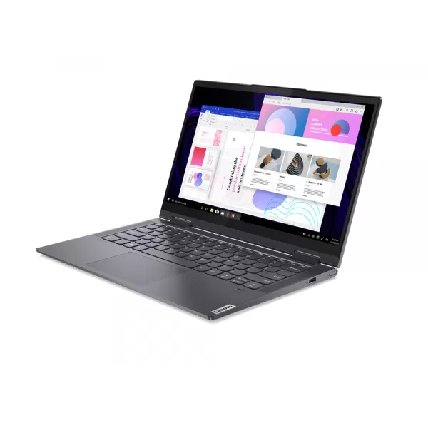 Laptop Lenovo Yoga 7 14ITL5, 14" FHD (1920x1080) IPS 300nits Glossy, 72% NTSC, AGC Dragontrail Glass, Touch, Intel Core i7-1165G7 (4C / 8T, 2.8 / 4.7GHz, 12MB), video Integrated Intel Iris Xe Graphics, RAM 16GB Soldered DDR4-3200, SSD 1TB SSD M.2 2280 PCIe 3.0x4 NVMe, no ODD, No Card reader, Stereo speakers, 2W x2, optimized with Dolby Atmos, 720p, No LAN, WLAN 11ax, 2x2 , Bluetooth 5.0, Touch Style, Porturi: 1x USB 3.2 Gen 1 (Always On), 1x Headphone / microphone combo jack (3.5mm), 2x Thunderbolt 4 / USB4 40Gbps (support data transfer, Power Delivery 3.0 and DisplayPort 1.4), 65W USB-C Slim (3-pin), Baterie Integrated 71Wh, Backlit, English, Slate Grey, Greutate 1.43 kg, Dimensiuni 320.4 x 214.6 x 15.68-17.7 mm, 2-year, Depot, Windows 10 Home 64, Romanian / English