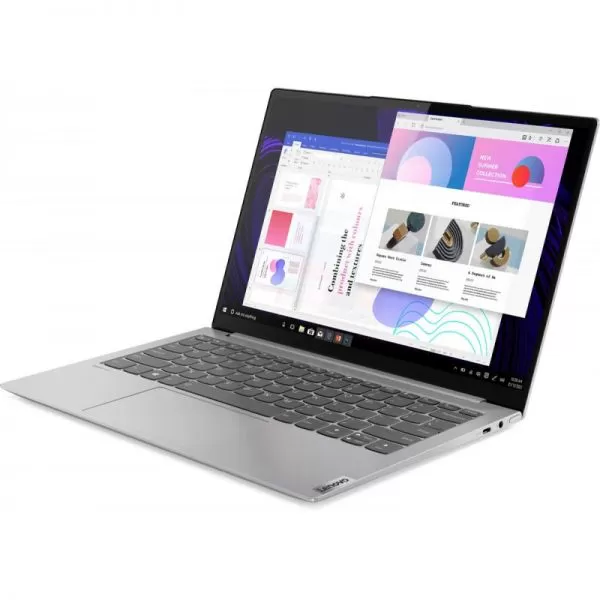 Laptop Lenovo Yoga Slim 7 13ACN5, 13.3" QHD (2560x1600) IPS 300nits glossy, 100% sRGB, Dolby Vision, AMD Ryzen 5 5600U (6C / 12T, 2.3 / 4.2GHz, 3MB L2 / 16MB L3), video Integrated AMD Radeon Graphics, RAM 8GB Soldered LPDDR4x-4266, sSD 512GB SSD M.2 2280 PCIe 3.0x4 NVMe, no ODD, No Card reader, Stereo speakers, 2W x2, Dolby Atmos, HARMAN-branded, 720p + IR + ToF, No LAN, WLAN 11ax, 2x2, Bluetooth 5.1, Porturi: 1x headphone / microphone combo jack (3.5mm), 2x USB-C 3.2 Gen 2 (support data transfer, Power Delivery 3.0 and DisplayPort 1.4), 1x USB-C 3.2 Gen 1 (support data transfer and Always On), 65W USB-C Slim, Baterie Integrated 50Wh, Backlit, English, Light Silver, Greutate 1.21 kg, Dimensiuni 295.88 x 208.85 x 13.8-14.9 mm, 2-year, Depot, Windows 10 Home 64, Romanian / English