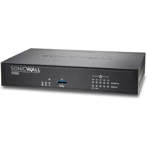 Firewall SonicWall TZ350, porturi: 3x1-GbE, 1xLAN, 1xWAN, throughput: DPI, DPI SSL, 1 port consola, 1 port USB, wireless 802.11ac, TotalSecure Advanced 1 an - include antivirus si antispam, IPS, application control, content filtering, 1 an suport 24x7 cu i