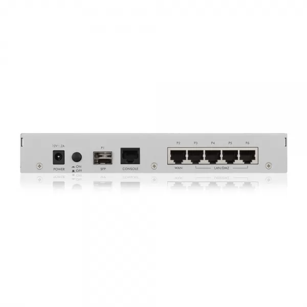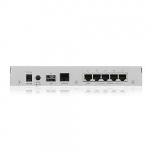 USG 20 VPN UTM | Porturi 1 x 1 x 10/100/1000 WAN | 1 x 1 x USB | 4 x 10/100/1000 LAN/DMZ | Numar conexiuni VPN 5 | 350 Mbps SPI Firewall Throughput | Encryption: AES (256-bit), 3DES and DES | Firewall | IPv6 Support | Layer 2 port grouping | 5 x Max. Concurrent SSL VPN Users | 10 x Max. Concurrent IPSec VPN Tunnels | 8 x SSID | 20000 x Max. Sessions
