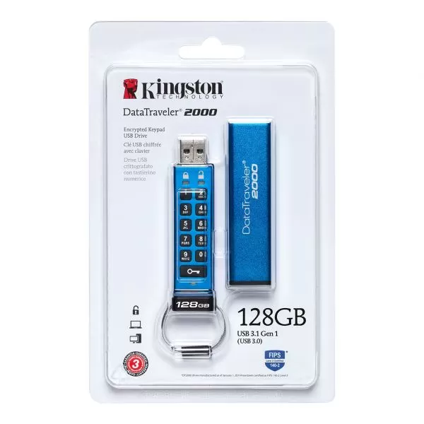128GB DT2000 USB 3.1 256BIT G1/AES HARDWARE ENCRYPTED