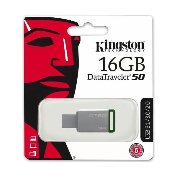 Flash Drive Kingston DataTraveler 50, 16GB, USB 3.1 Metal/Green