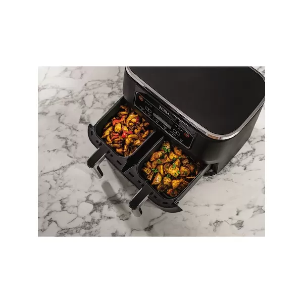 Doriti sa prajiti intr-un sertar si Air Fry in celalalt? Nici o problema! Timpuri diferite de gatit pentru degete de peste si cartofi prajiti? Ambele termina de gatit in acelasi timp, astfel incat sa va puteti bucura de prajituri si parti proaspat gatite impreuna - nu este nevoie sa folositi diferite aparate sau sa va lasati partea rece sa raceasca in timp ce principalul dvs. termina de gatit!