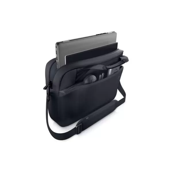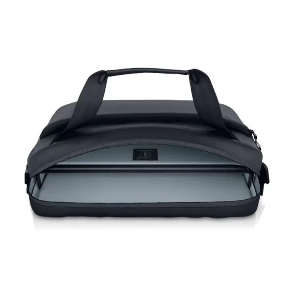 Dell EcoLoop Pro Slim Briefcase 15, Color: Black, Laptop Compatibility: Fits most laptops with screen sizes up to 15.6" (Excluding Dell G Series Gaming, Alienware and Dell Rugged Laptop Series, max laptop dimension: 360 x 255 x 25 mm), Features: Made with solution-dyeing process for polyester that can generate up to 90% less wastewater and up to 62% less CO2 emissions and uses up to 29% less energy than traditional dyeing processes, Exterior main fabric is made with 100% recycled plastic, approximately 11 recycled plastic bottles, Recycled weatherproofing at the bottom of the bag, Packaging made with 100% recycled content in the hang tag, hang loop, plastic bag, 360° foam cushioning for complete laptop protection, Weather and dirt-resistant, heavy duty 600D body fabric, Dedicated laptop and tablet padded sleeves, Spacious compartment to store documents and everyday accessories, Zippered front pocket with purpose-built organizers, Luggage pass-through, Grab handle, adjustable shoulder strap, Reflective accents for increase visibility during low- light hours, Dimensions: 390 x 290 x 90 mm, Weight: 0.49 kg, 3y limited warranty