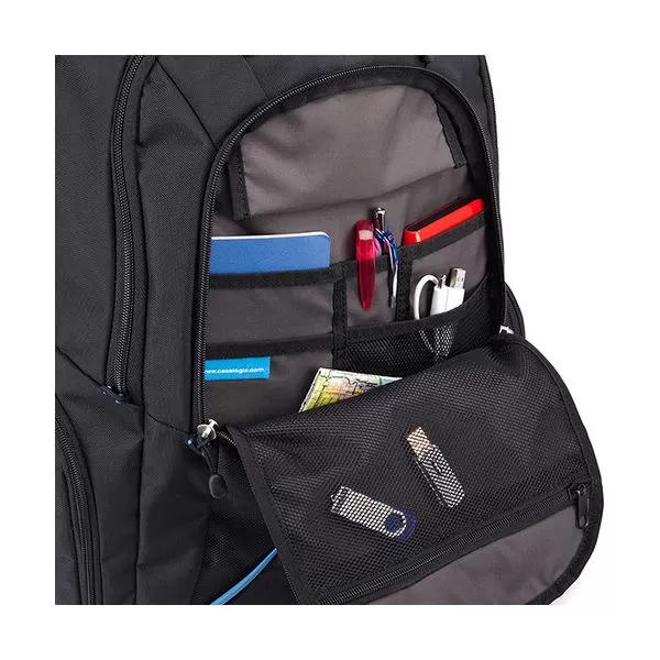 RUCSAC CASE LOGIC notebook 15.6", poliester, 2 compartimente, buzunar interior tableta, 2 buzunare frontale, 2 buzunare laterale, orificiu acces casti, buzunar dorsal ascuns, black, BEBP115K /3201672