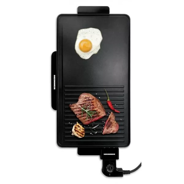 Grill electric 2 in 1 Heinner HEG-F2000GT, folosire simultana grill si tava, 2000W, placa aluminiu turnat cu invelis non-stick, temperatura reglabila, dimensiuni placa 49 x 27 cm