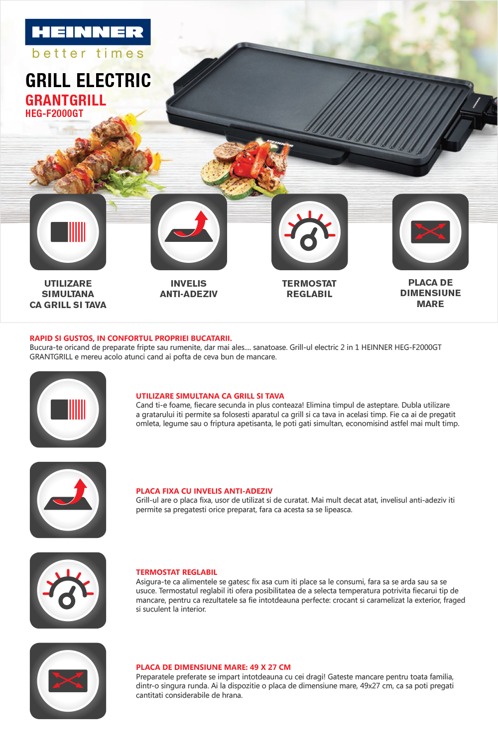 | Caracteristici Gratar electric Heinner HEG-F2000GT, 2000W, Negru: | |