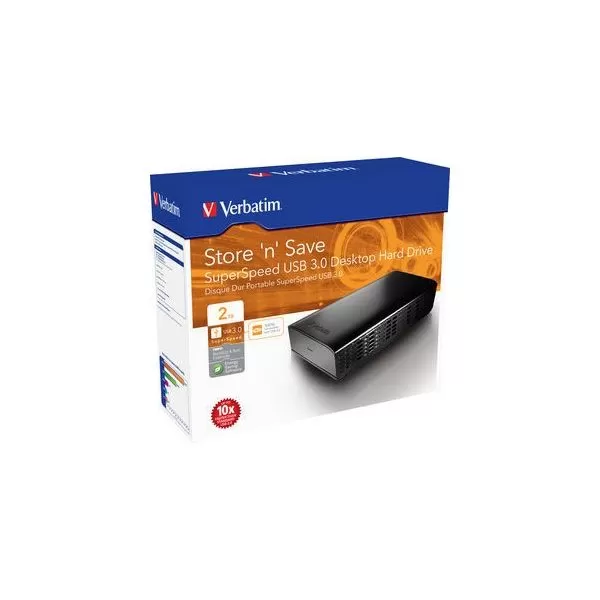 HDD EXTERN 2TB VERBATIM 3.5'' STORE 'N' SAVE, SLEEP SETTING, BACKITUP AND BURN ESSENTIALS, DESKTOP USB3.0 NEGRU - VB-47672