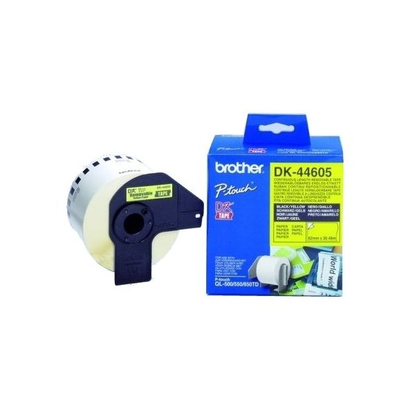 Bandă continuă de hârtie Brother DK44605, 62 mm x 30,48 m, negru/galben