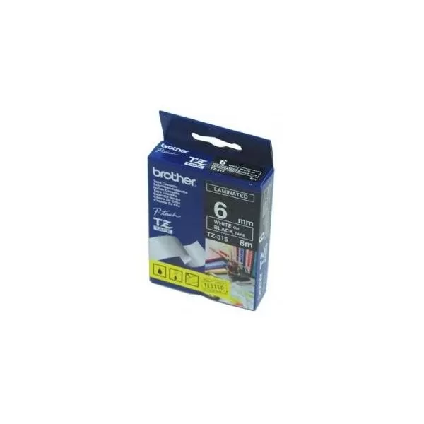 Bandă laminată Brother TZ315, 8m/6mm alb/negru